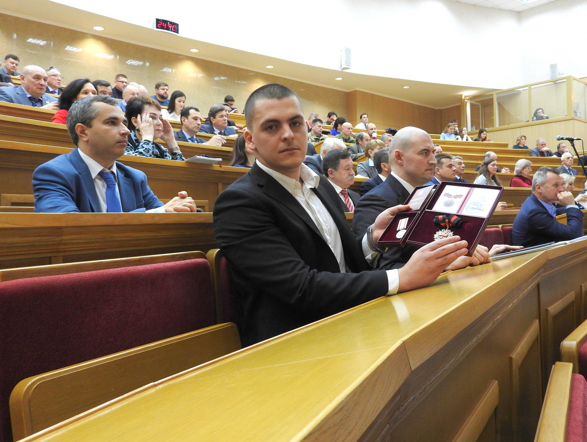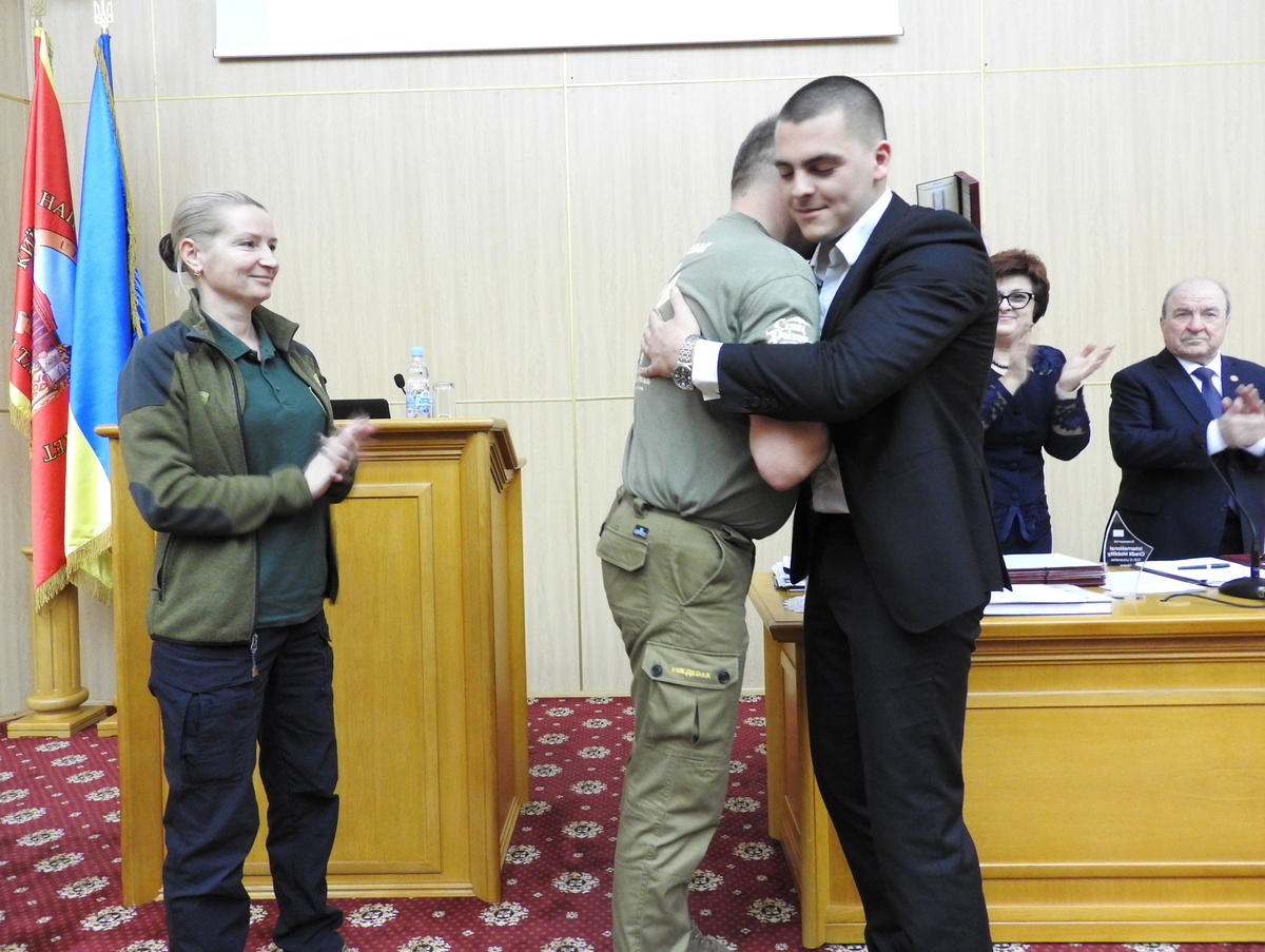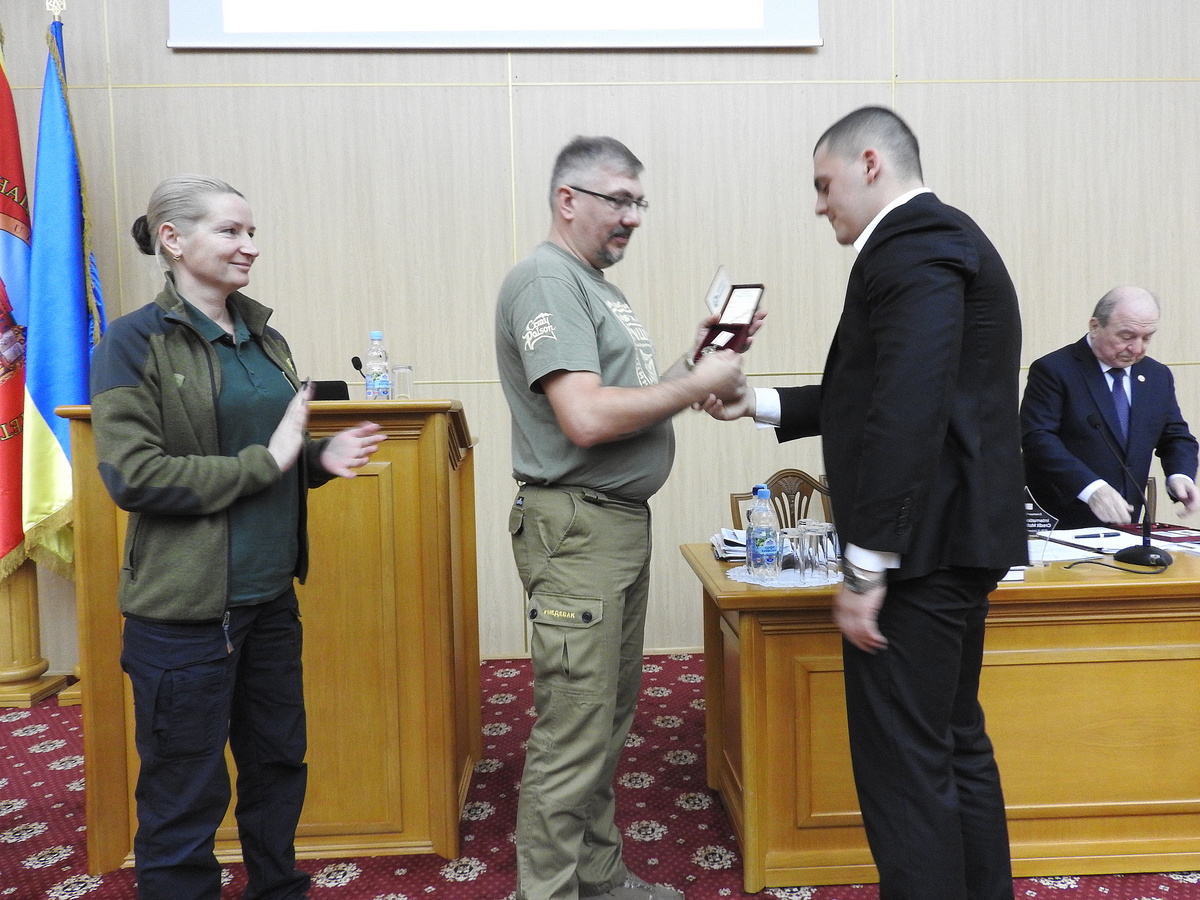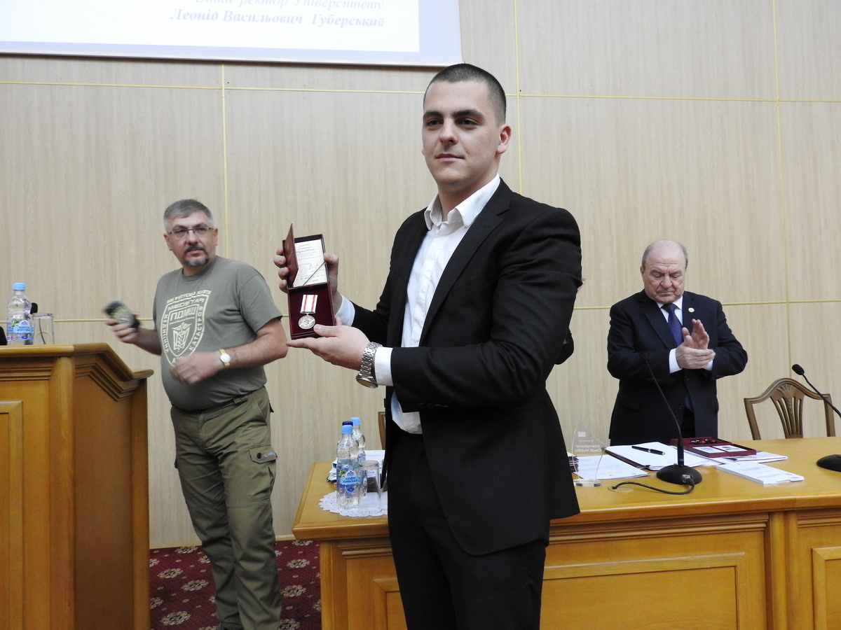 2019/11/04, Kyiv. Handing awards to student Stepan Sirak, paramedic of PFVMH medical evacuation team (MedStar Medevac), during the meeting of the Kyiv Shevchenko National University’s Senate