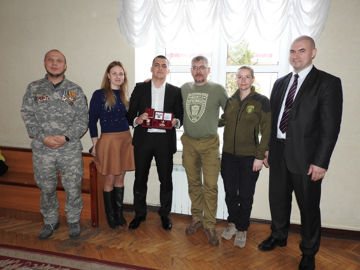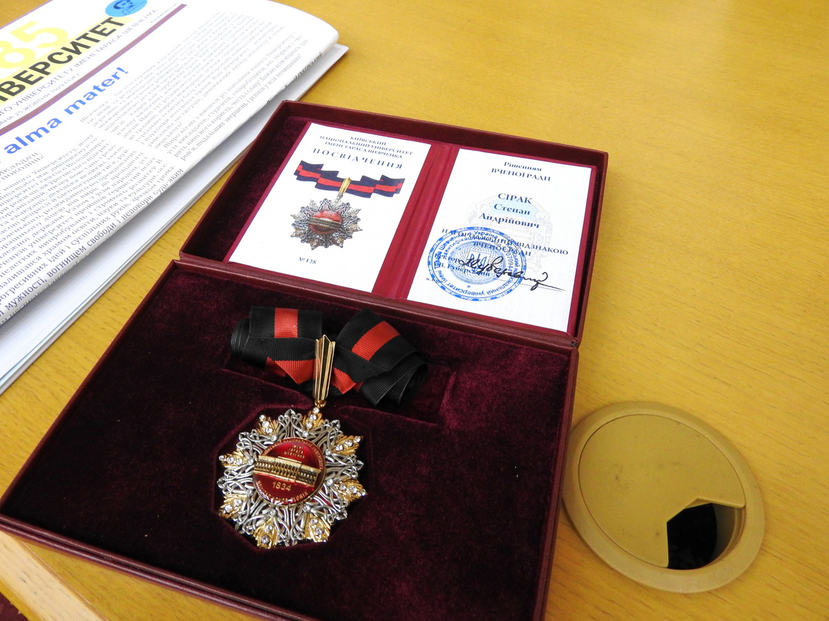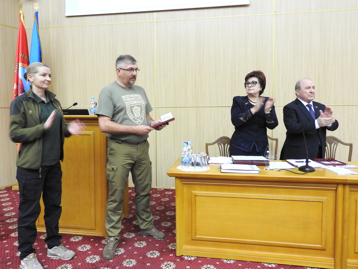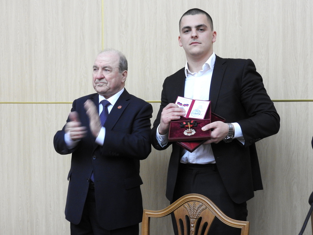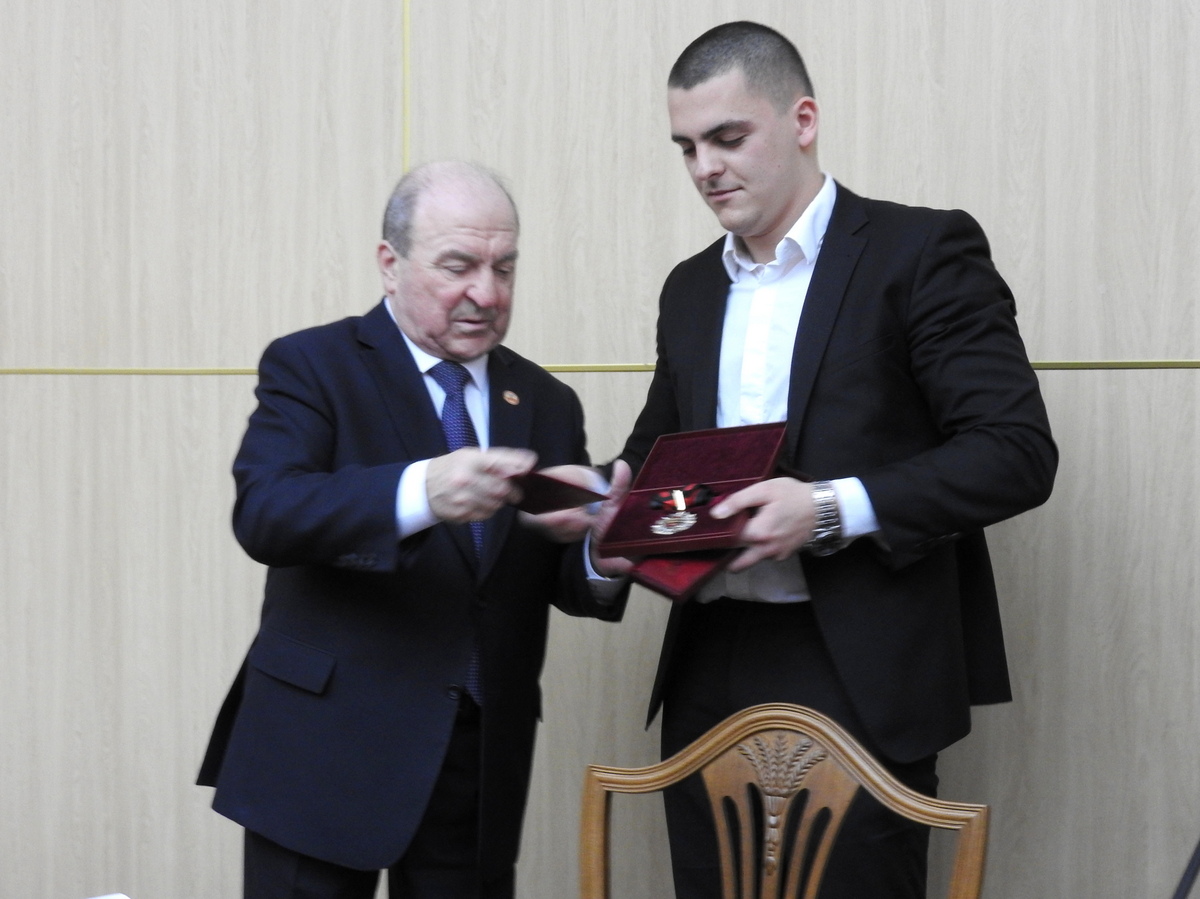 2019/11/04, Kyiv. Handing awards to student Stepan Sirak, paramedic of PFVMH medical evacuation team (MedStar Medevac), during the meeting of the Kyiv Shevchenko National University’s Senate