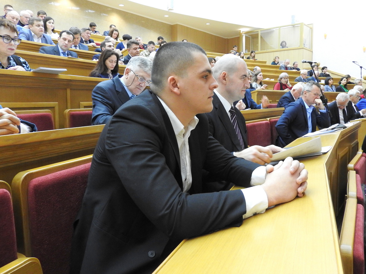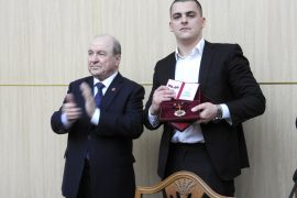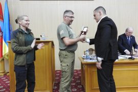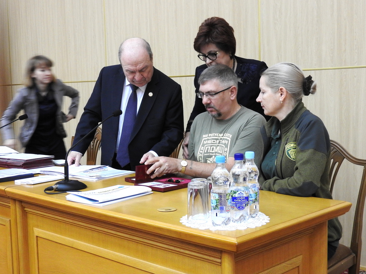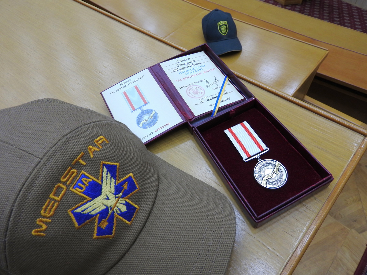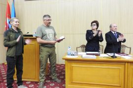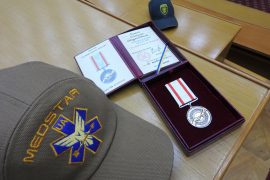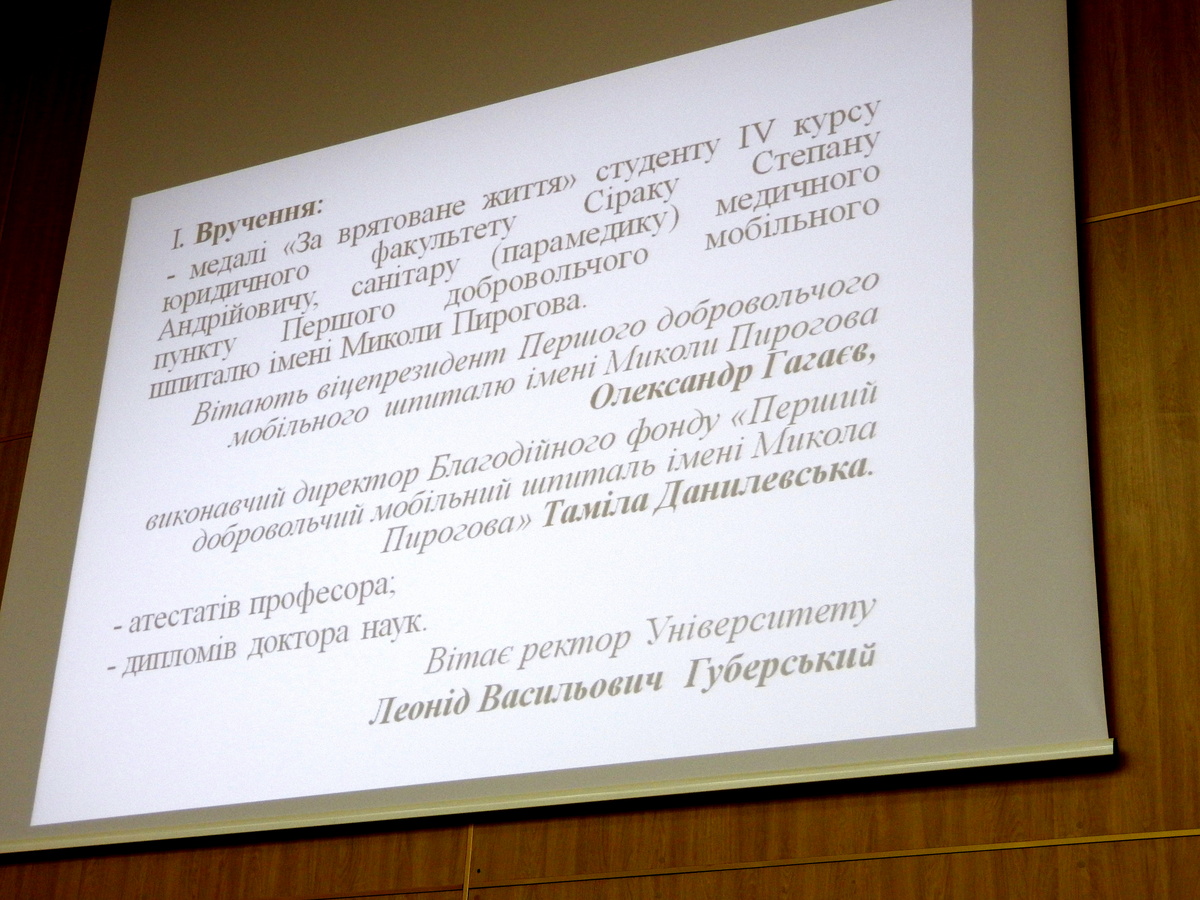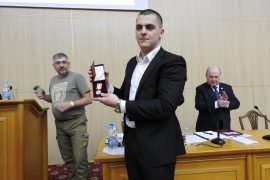 2019/11/04, Kyiv. Handing awards to student Stepan Sirak, paramedic of PFVMH medical evacuation team (MedStar Medevac), during the meeting of the Kyiv Shevchenko National University’s Senate