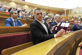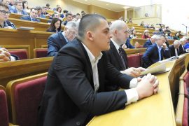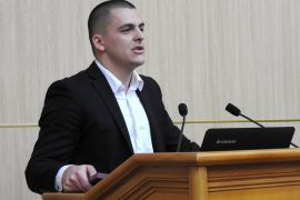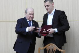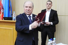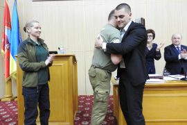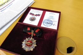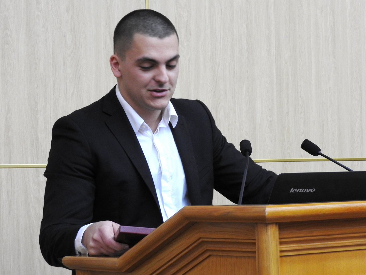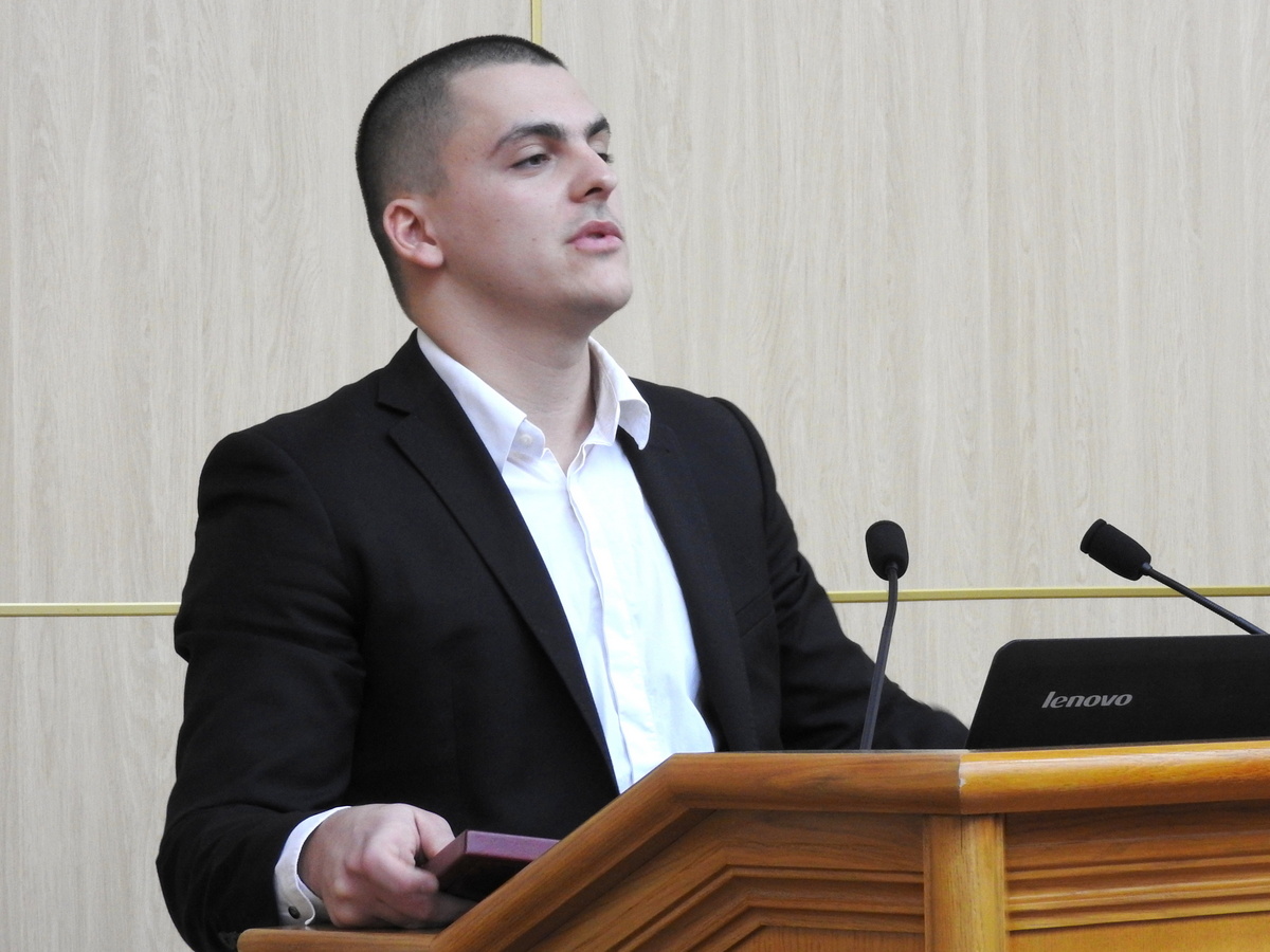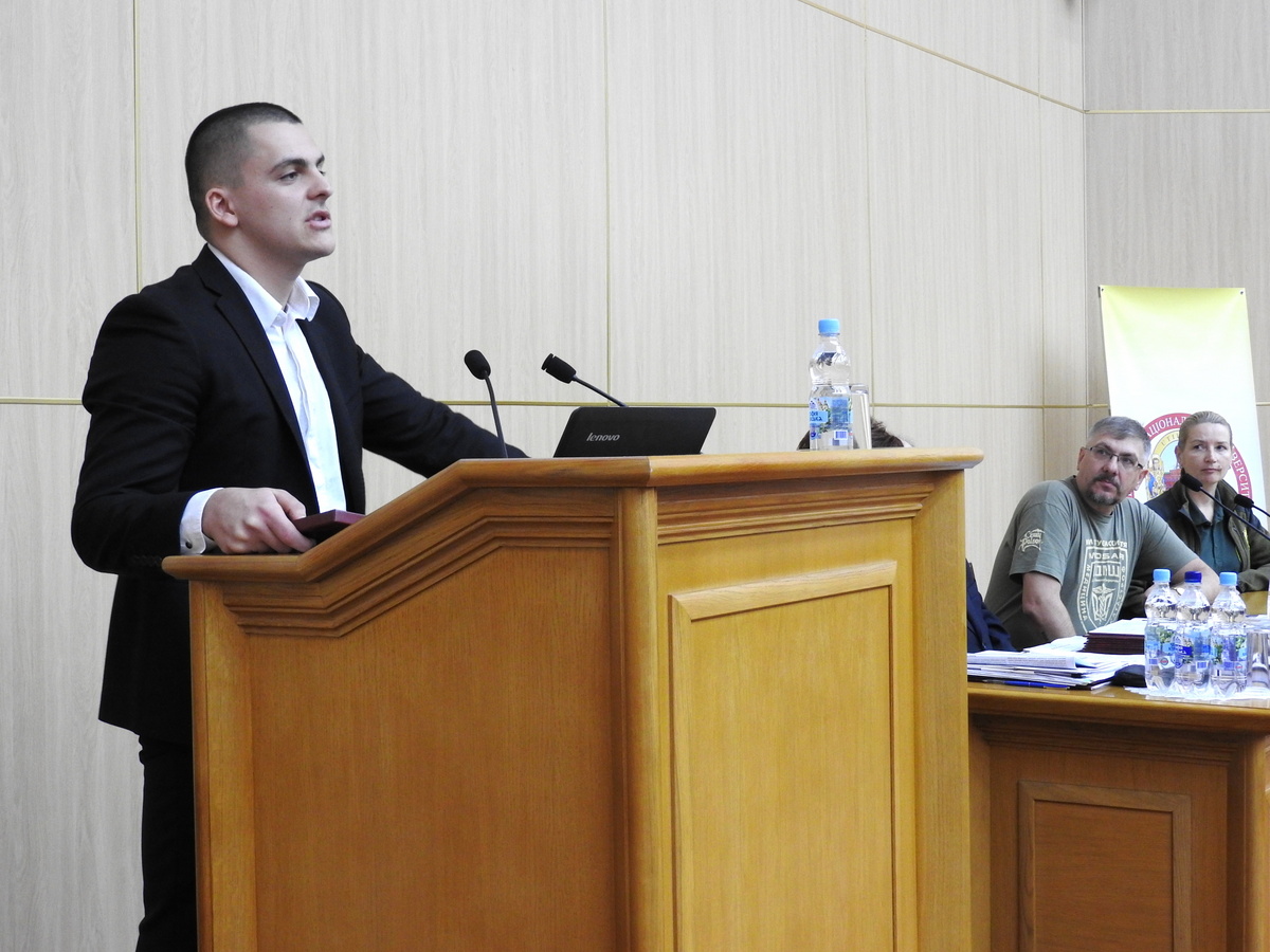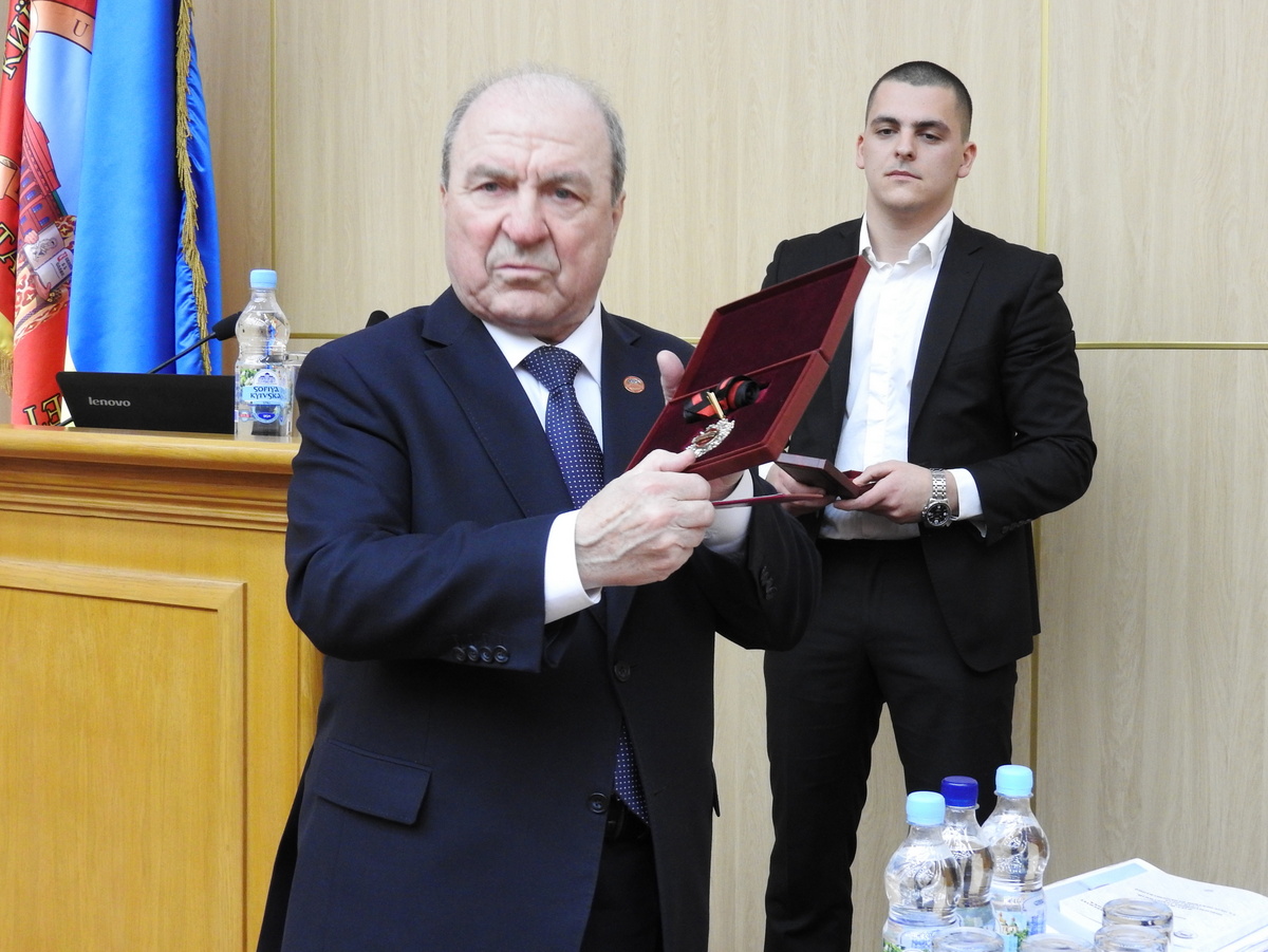 2019/11/04, Kyiv. Handing awards to student Stepan Sirak, paramedic of PFVMH medical evacuation team (MedStar Medevac), during the meeting of the Kyiv Shevchenko National University’s Senate