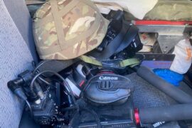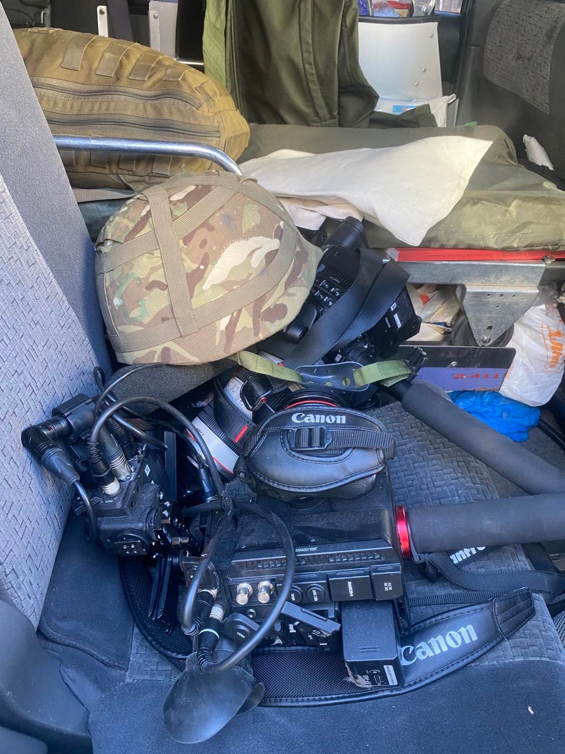 PFVMH Supervisory Board Chairman Gennadiy Druzenko came to the hospital to see the wounded American journalist and brought his and his killed colleague’s cameras and other reporter’s gear.