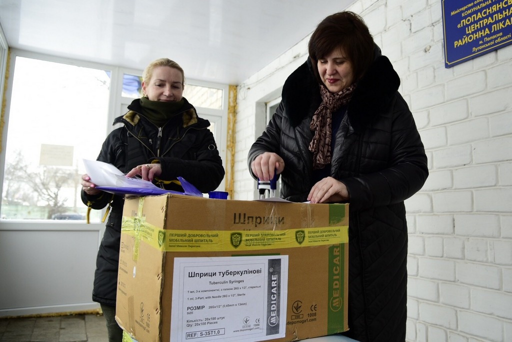 Today, the Pirogov First Volunteer Mobile Hospital delivered 3,400 flu shots complete with disposable syringes and alcohol tissues, all donated by the Medek Pharmaceutical Company, to two health care institutions in Luhansk Oblast.