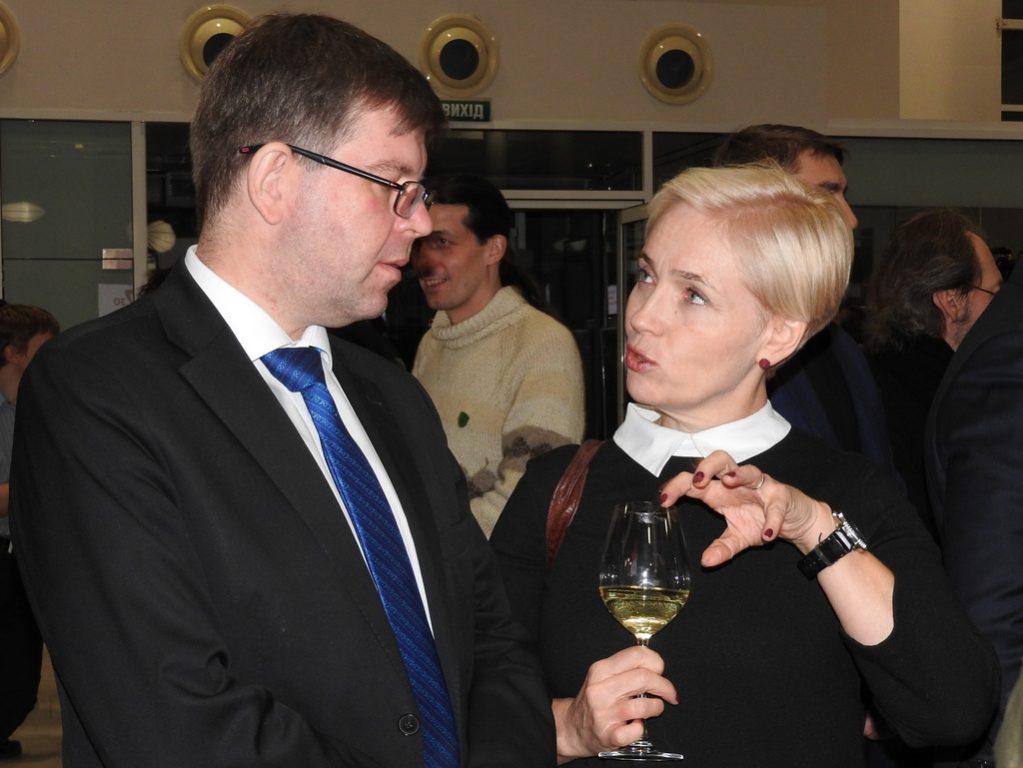 Marius Janukonis, Ambassador of the Republic of Lithuania to Ukraine: “I’m still considering [purchase of an icon]. But we made two exhibitions in the embassy – this year and last year – so we know very well these works. Those wonderful icons were bought by both staff of the embassy and people who attended our events. Buying the icons means combining assistance with purchase of pieces of art. It is both a very nice and great humanitarian idea and also beautiful pictures. That is, there are two aspects, humanitarian and artistic, that match very well in this project.” Ann-Kristin Bjergene, Deputy Director of the NATO Liaison Office in Ukraine: “I’m very happy with my purchase. Why did I buy the icon? I wanted to help and also I think it’s a very nice piece of art. It’s marvelous how you make something evil into something beautiful, and this is exactly what has been happening here: take a piece of something that is completely broken and heal it again. And that’s the idea of the medical initiative and also the idea of the art project, as far as I can understand”