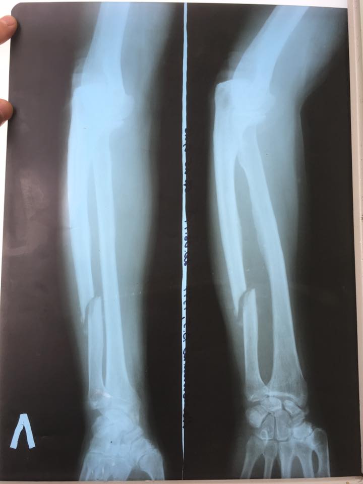 Later, Oleksiy told that the old man broke one of his forearm bones in his yard, while handling wastes. For two following months he had his arm is a plaster cast, but there was malunion. During the operation, also attended by PFVMH surgeon Vadym Kozlovsky and local personnel – an OR nurse and an anesthesiologist – the bone fractions were aligned and fixed with a plate.