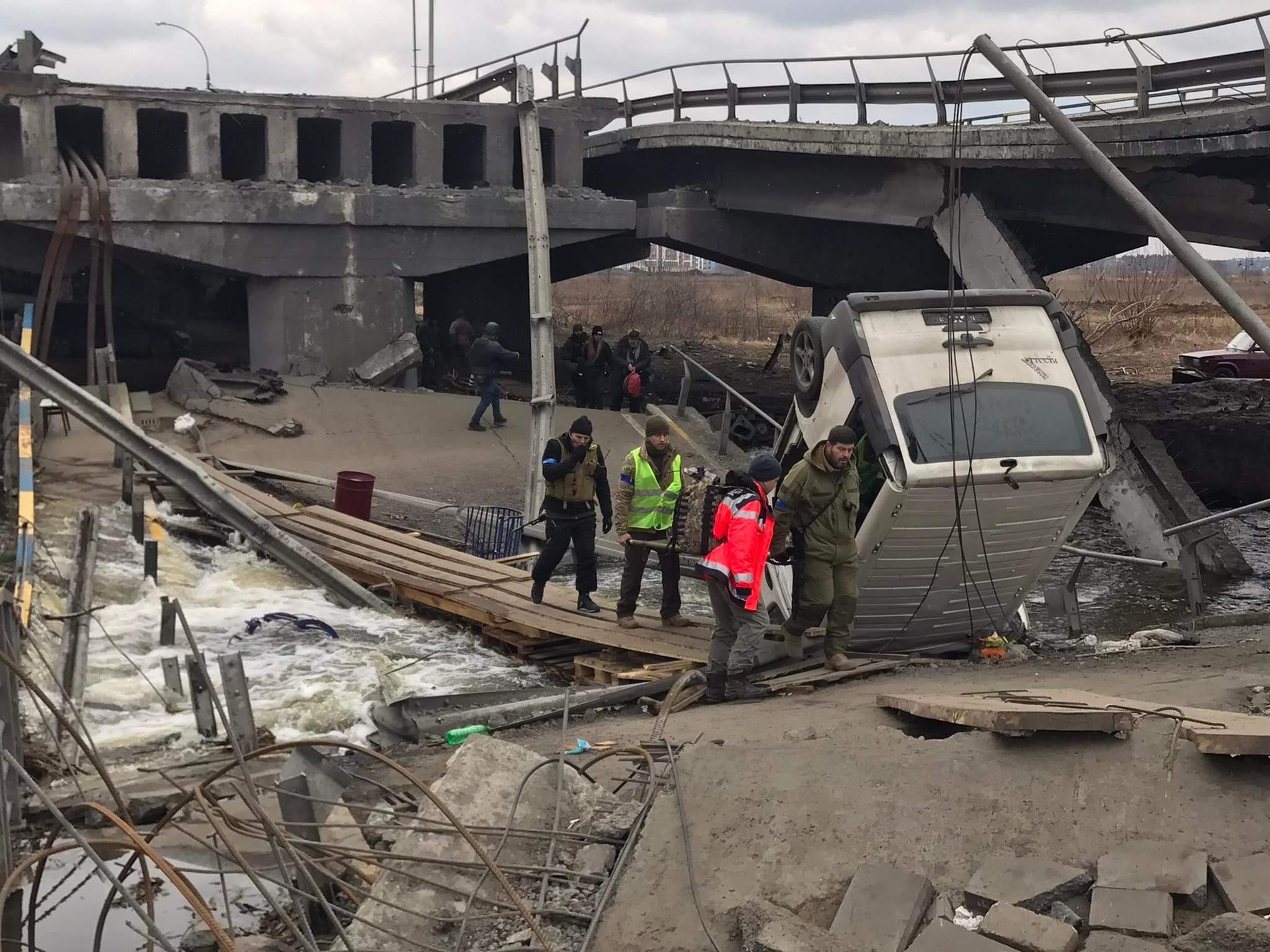 A PFVMH ambulance team transported from under the Irpin Bridge an injured American journalist to Kyiv’s maternity and childhood protection hospital OkhMatDyt (now repurposed for the care of the wounded).