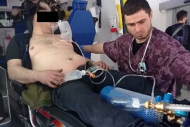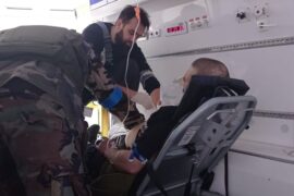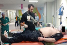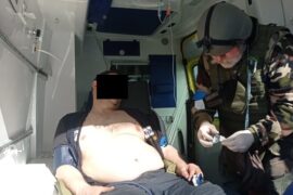 The warrior was sensible and complained of chest pain above the heart, according to the medics – Taras Pankevych, Lyubov Savytska, and Serhiy Kyselyov. The examination detected a bullet wound that had resulted in pneumothorax. The wounded began losing consciousness but the skilled actions of Taras Pankevych saved his life. The patient was stabilized and brought to the OkhMatDyt hospital, where surgeon Andriy Vysotsky operated on him.