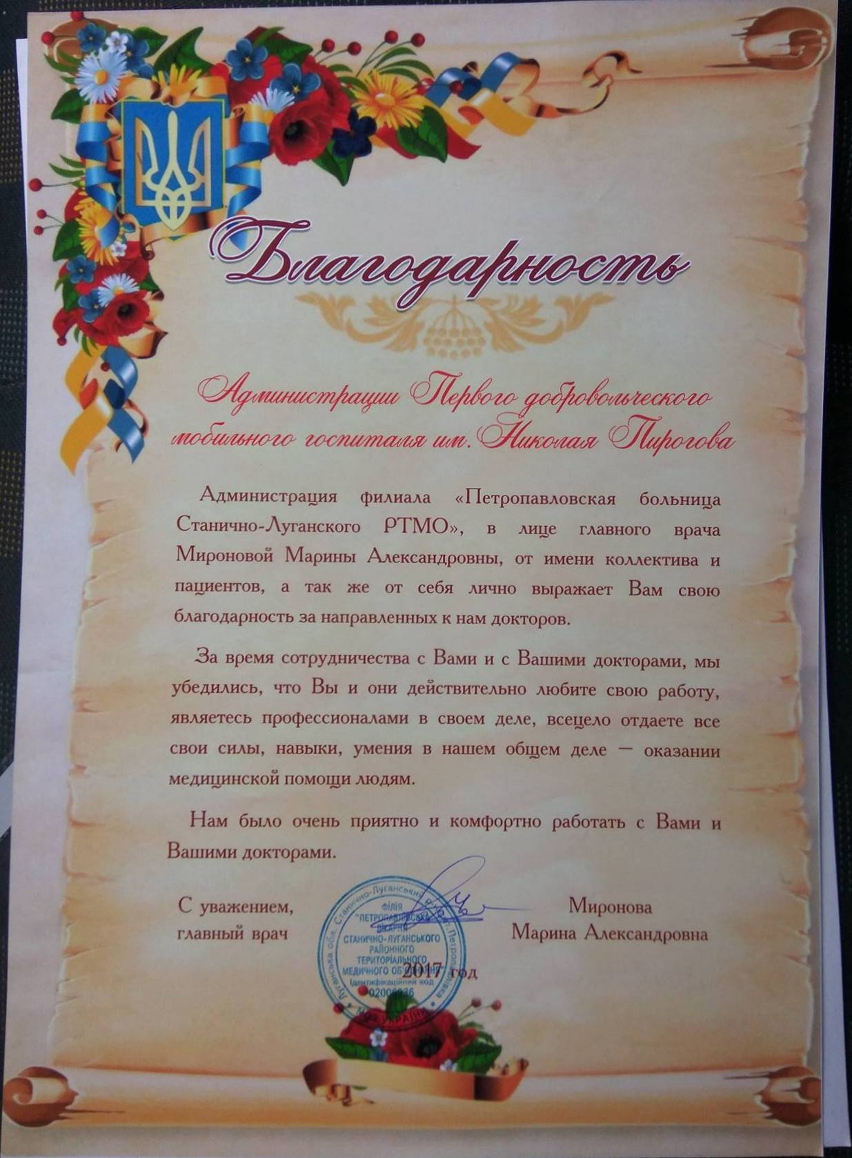 Yesterday, doctors of the Pirogov First Volunteer Mobile Hospital returned home with an official certificate of acknowledgement after completion of the PFVMH’s first mission in Petropavlivka, Luhansk Oblast. On behalf of personnel and patients of the Petropavlivka Hospital, its chief physician had written, addressing the volunteer hospital’s management, “During the period of collaboration with you and your doctors we have learned that you really love your job, are professionals in your business, and devote all your energies and skills to our common cause – provision of medical aid to people.”