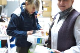 In the video below, Elena Bulakhtina, a physician from Hamilton, Ontario, is distributing medicines and advising on their application. “Medicine here doesn’t follow guidelines,” says the Canadian doctor. “It’s all improvised with whatever supplies are available at the moment.”