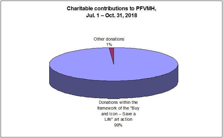 It won’t be far from the truth to say that, during these four months, the PFVMH was functioning thanks to two Kyivan artists: Oleksandr Klymenko and Sofia Atlantova. In the statement, the revenues from them are marked as “Donations within the framework of the ‘Buy and Icon – Save a Life’ art action.” Although other contributions account for just one percent of total donations, we are deeply grateful to all those who help for their willingness to endow.