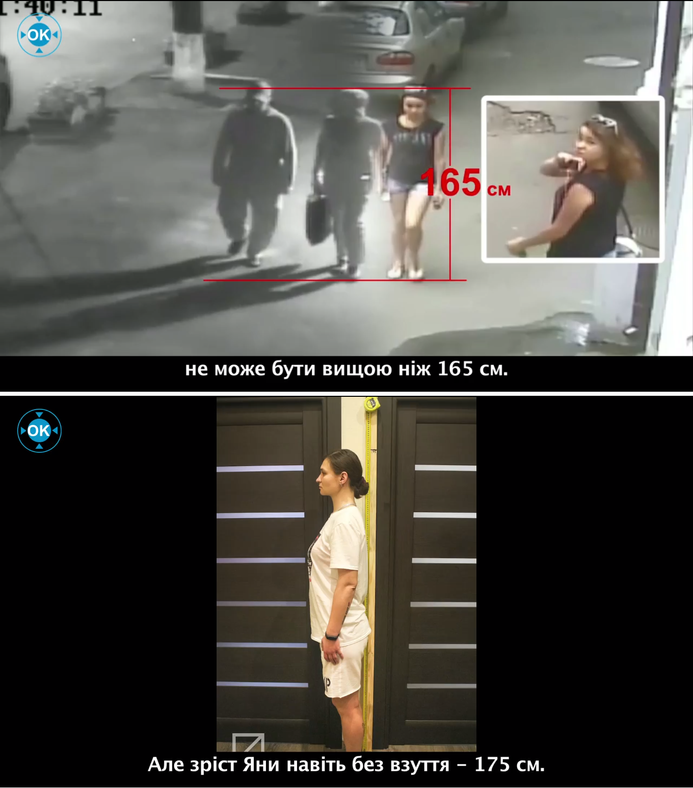 Whatever the evidence suggests, there are serious doubts that the persons on the video footage are indeed the three detained suspects. These doubts have miraculously slipped from the attention of the investigators and judges. Let’s examine, for example, the suspects’ height: Yana Duhar is 10 cm taller than the “scout” in the video[16], and Andriy Antonenko is taller than the bearded man on the video by 5 to 10 cm.[17] As for the beards, these were different at the time: the man in the video had his cheeks shaved, and there is no way Andriy could have grown his beard up to his ears in one day to appear as shown on his photo published on July 21. Speaking of appearance, Yana has tattoos on her hand and leg, absent on the “scout.”