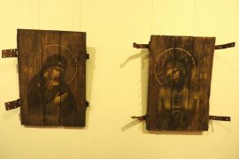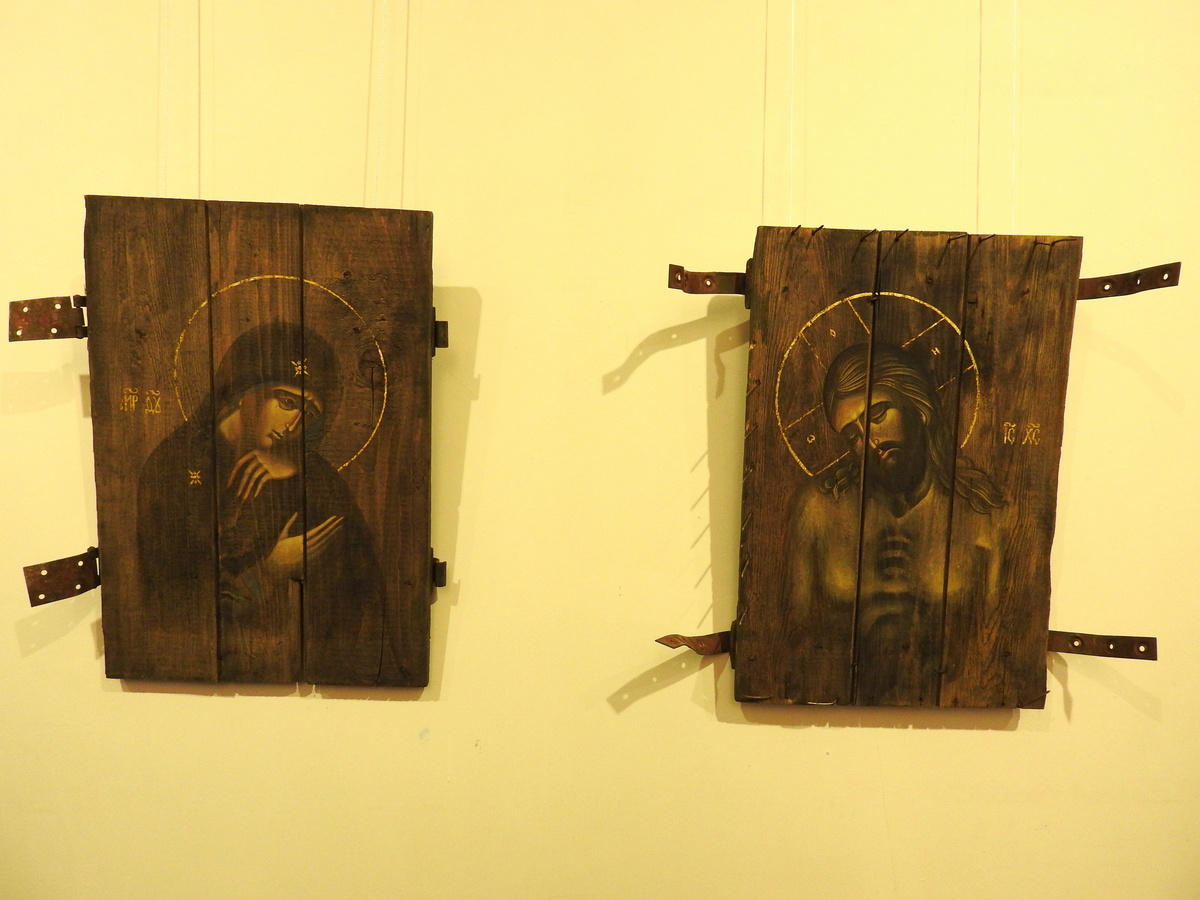 2019/04/16, Київ, Софійський собор. “Passiones/Страсті” – виставка ікон на ящиках від набоїв, присвячена п’ятій річниці початку війни на Донбасі