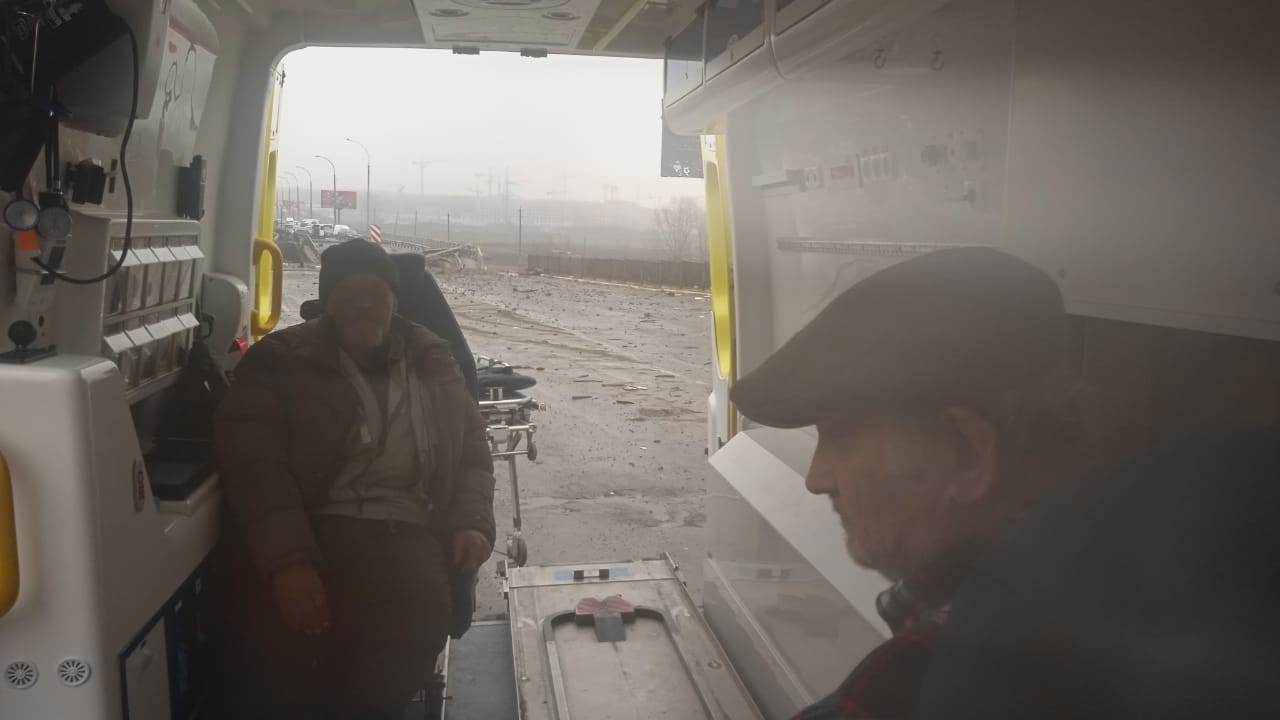 Бригада швидкої допомоги ПДМШ з іноземними медиками вперше виїхала в район Ірпеня та евакуювала до Київської обласної клінічної лікарні 35-річного місцевого мешканця з гангреною після відмороження ніг. У складі бригади – дві громадянки Канади, британець та український водій.