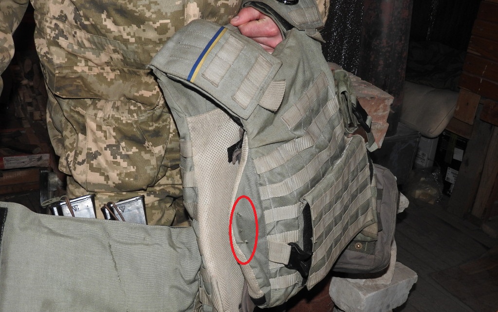 Але хлопці помітили червону пляму, яка вже почала виступати за бронежилетом. Його роздягнули, оглянули і побачили продірявлені кітель і футболку.