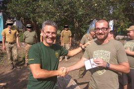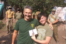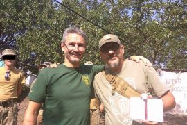 Сьогодні чотирьом медикам Першого добровольчого мобільного шпиталю ім. Миколи Пирогова з групи, відзначеної Міністром оборони України, вручено їхні нагороди “на передньому краї оборони незалежності України”, як вони це самі сформулювали. Віце-президент ПДМШ із взаємодії зі Збройними Силами України та іншими збройними формуваннями Олександр Гагаєв та анестезіолог Марина Білінська були нагороджені нагрудним “Знаком пошани”, а фельдшер Олександр Бохонок та анестезист В’ячеслав Леонтьєв – медаллю “За сприяння Збройним Силам України”.