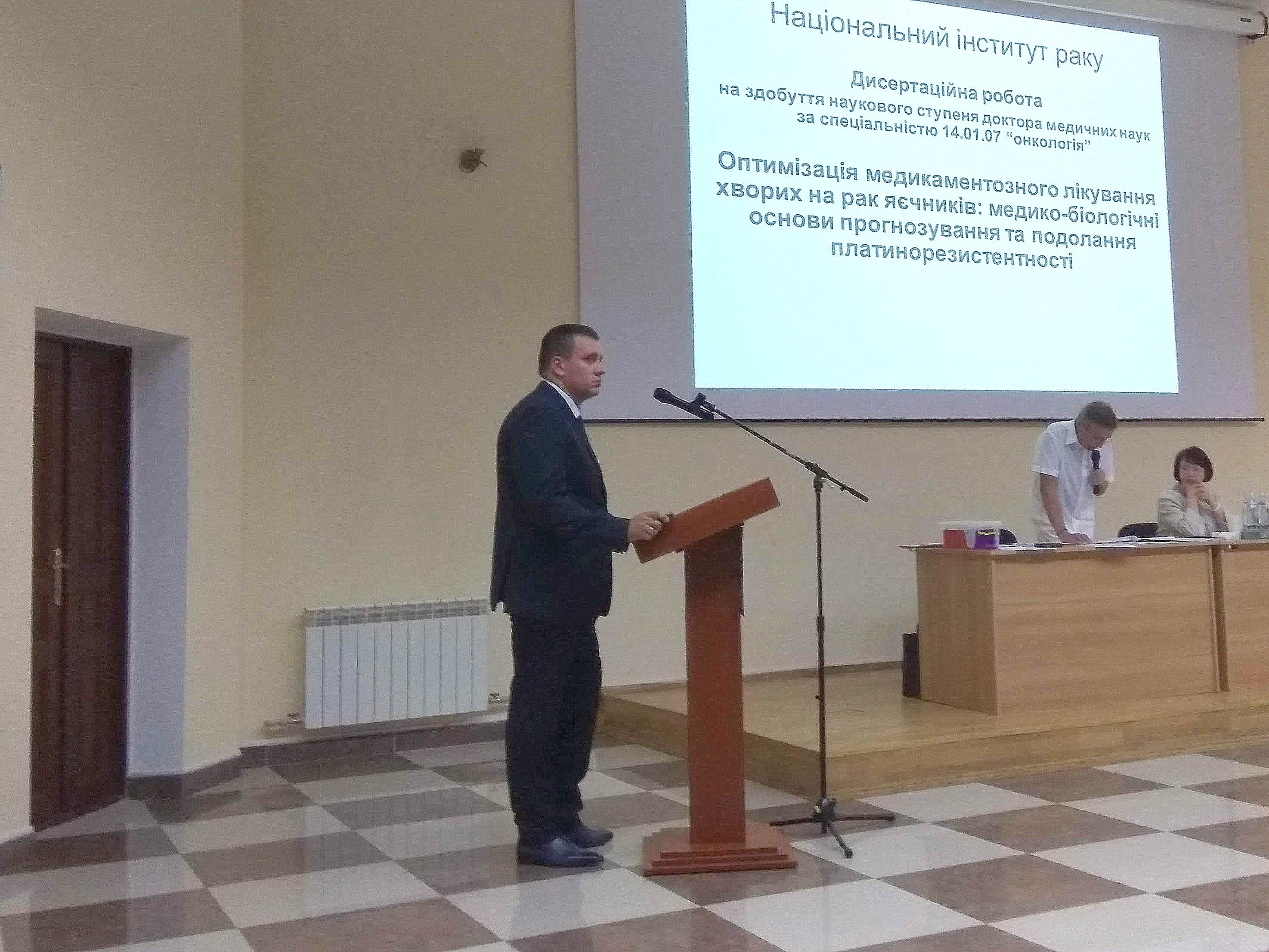 Дисертація Андрія Рибіна “Оптимізація медикаментозного лікування хворих на рак яєчників: медико-біологічні основи прогнозування та подолання платинорезистентності” була схвально прийнята як опонентами дисертанта, так і Вченою радою інституту, яка одноголосно проголосувала за присудження йому наукового ступеня доктор наук. В обговоренні дисертації особливо наголошували не тільки на актуальності дослідження, а й на наполегливості молодого вченого у відстоюванні теми дисертації. Також враження на присутніх справив великий обсяг експериментальної роботи в рамках дослідження та кількість пов’язаних з ним публікацій.