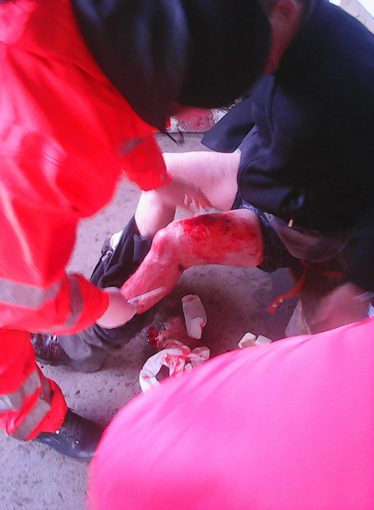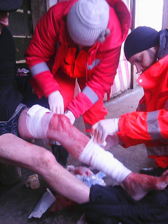 Першу допомогу потерпілому надали українські прикордонники, які наклали дідусю джгут і покликали медиків ПДМШ. Разом з Василем на «нуль» приїхали хірург Дмитро Пожарський та медсестра Ніна Шапошник. Медики виявили численні поранення лівої кінцівки від стегна до щиколотки. Також дідусю зачепило грудну клітку з лівого боку, але легеня вціліла. Пироговці замінили джгут на тиснучі пов’язки та відвезли до медпункту, де стабілізували пораненого й передали «швидкій», яка відвезла його до лікарні.