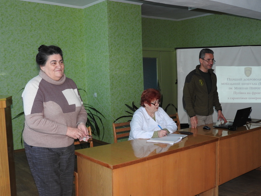 Сьогодні у міській поліклініці для дорослих м. Сміла Черкаської області відбулася презентація Першого добровольчого мобільного шпиталю ім. Миколи Пирогова працівникам розташованих у місті закладів охорони здоров’я. Президент ПДМШ Геннадій Друзенко розповів про мобільний шпиталь, правові засади його діяльності, досягнення, умови участі та роботи медиків-добровольців.