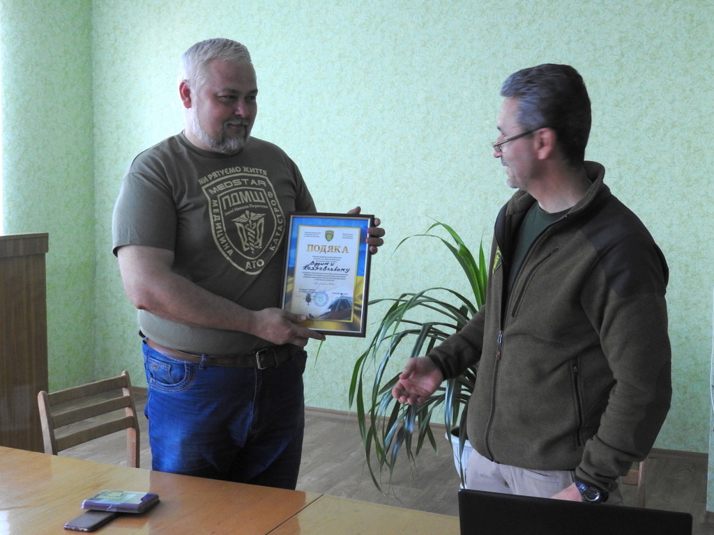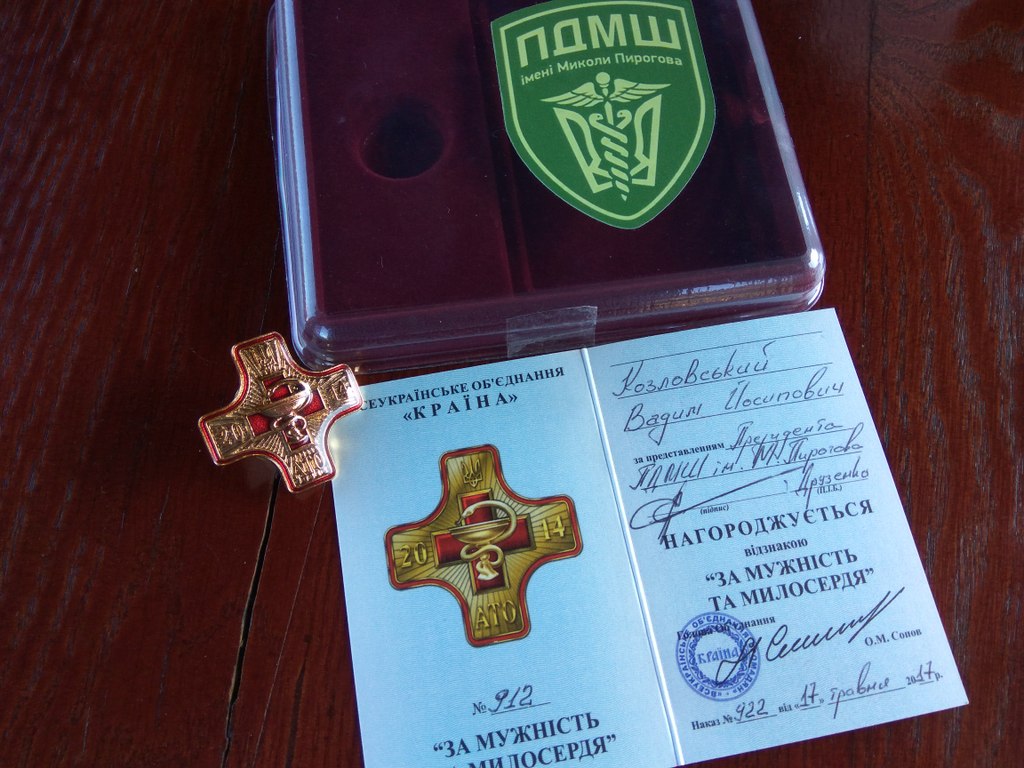 Користуючись нагодою, Друзенко також вручив грамоту та відзнаку “За мужність та милосердя” заступнику головного лікаря Смілянської центральної районної лікарні хірургу Вадиму Козловському. Вадим – неодноразовий учасник ротацій ПДМШ на Сході – своєю кваліфікованою, самовідданою та безкорисною працею в зоні АТО зберіг життя та здоров’я багатьом захисникам Батьківщини та цивільним мешканцям прифронтових районів.