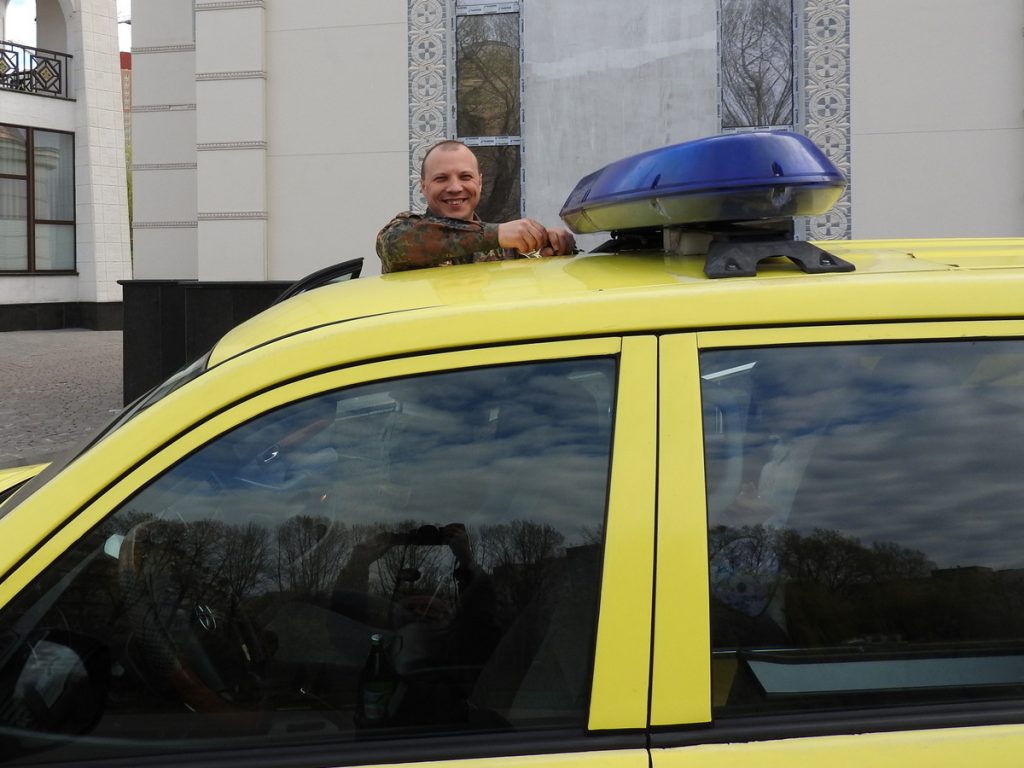 Дякуючи за автомобіль, Геннадій Друзенко назвав його “непересічним подарунком”, який особливо приємно отримати в цей святковий день, а також “справжнім флагманом” серед машин швидкої допомоги мобільного шпиталю. “Уже сьогодні він вирушить на Схід рятувати військових і цивільних у зоні АТО”, – повідомив Друзенко.