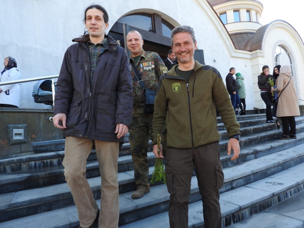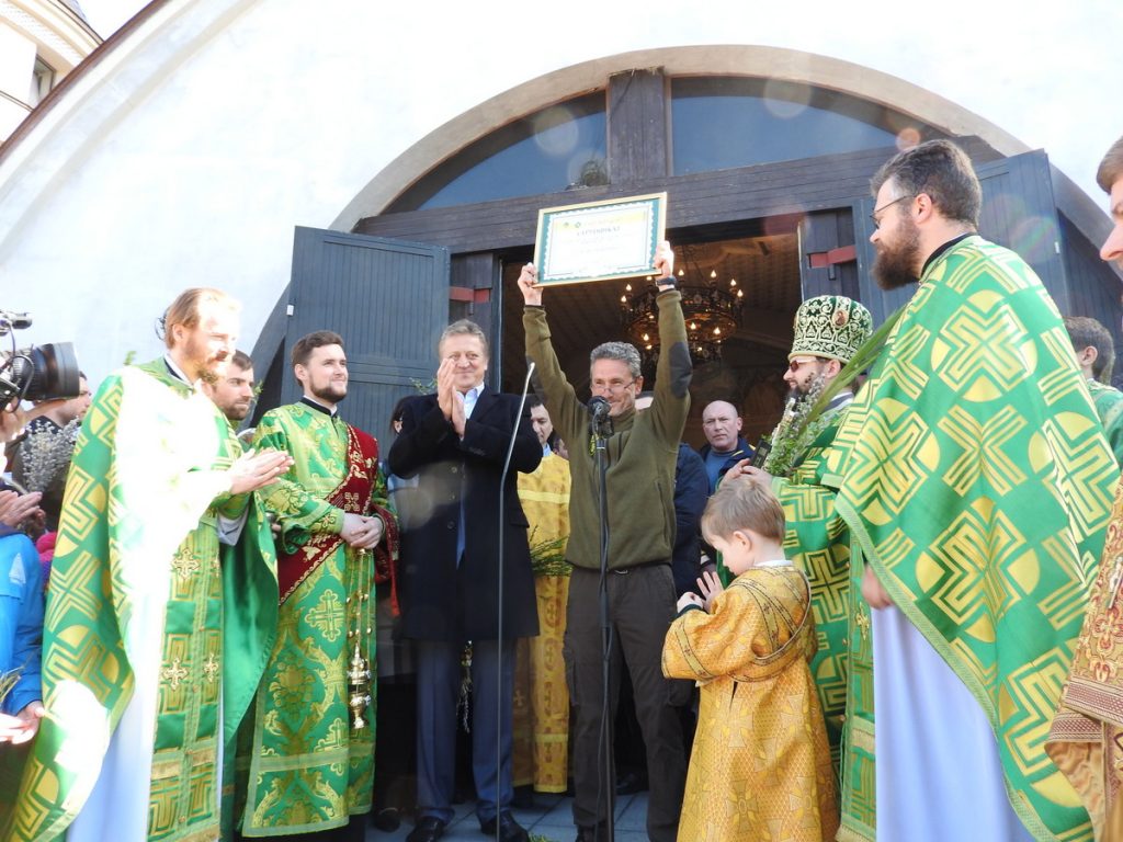 Олександр Клименко зізнався, що “неймовірно схвалюваний і вражений кількістю людей, які прийшли до цього храму”. “Я щасливий бачити людей зі світлими обличчями, і я щасливий бачити тих людей, які вміють поєднувати такі начебто непоєднувані, на перший погляд, речі як любов до своєї земної та небесної батьківщини”, – сказав митець.