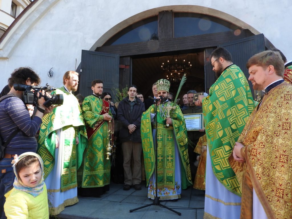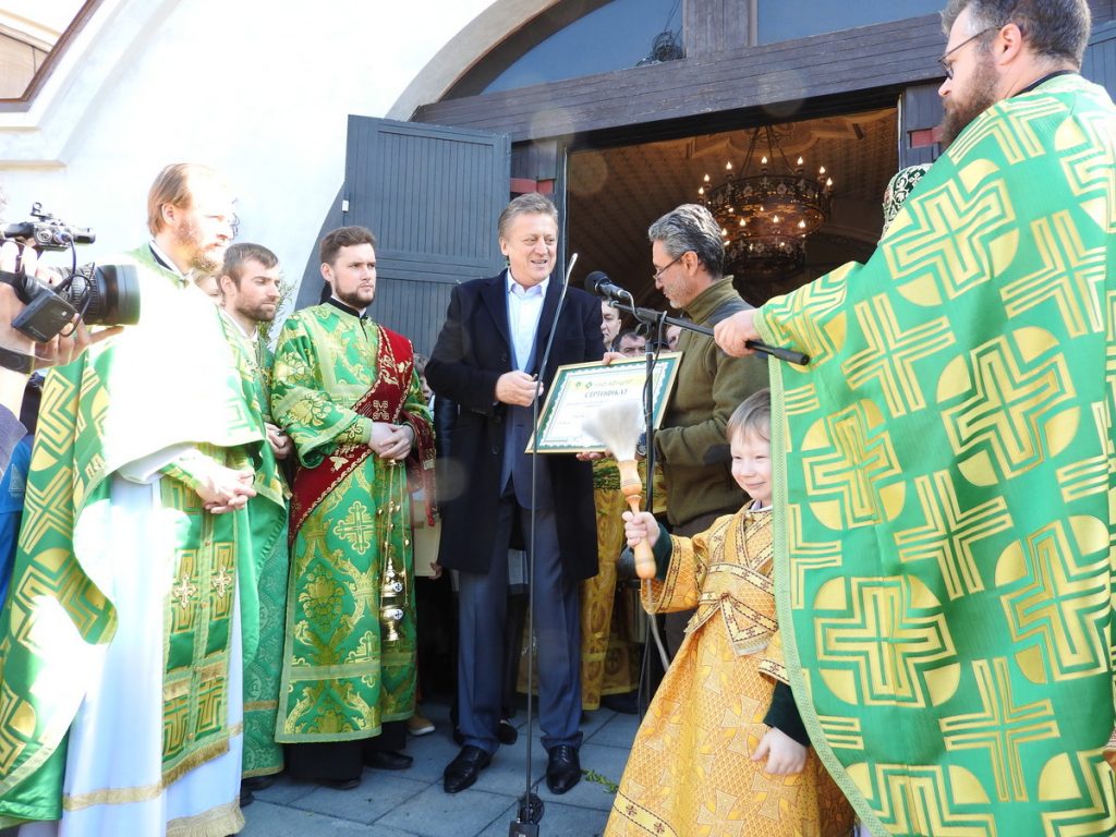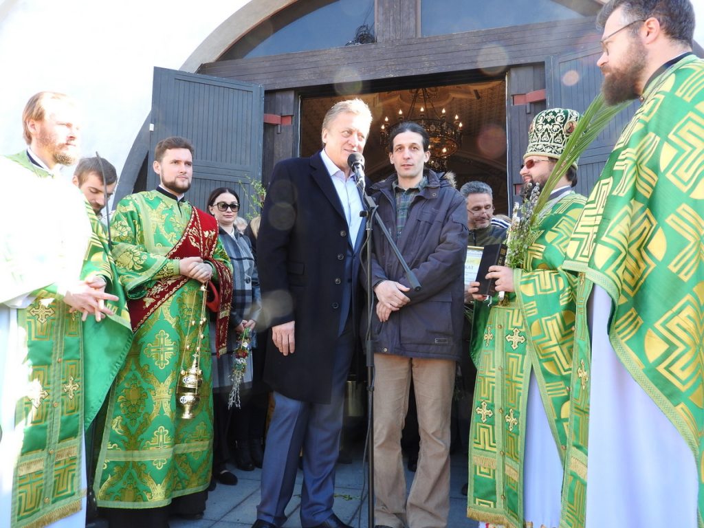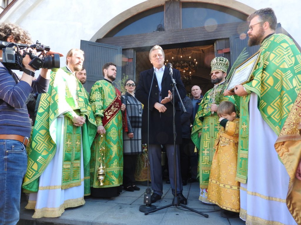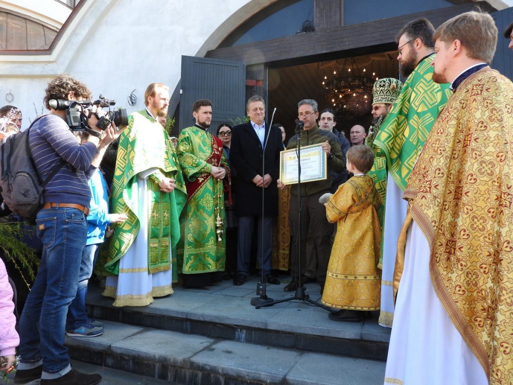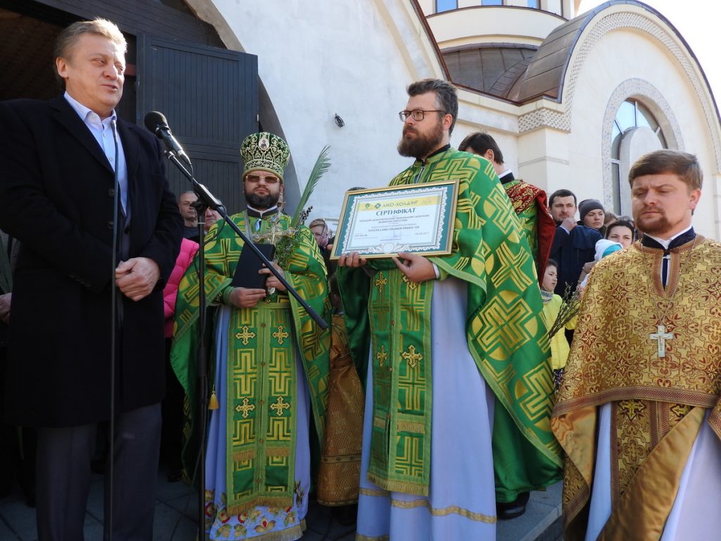 Звертаючись до прихожан з цієї нагоди, Ігор Лисов також повідомив про передачу храму колекції ікон, написаних в рамках кампанії ПДМШ “Придбай ікону – врятуй життя” київськими митцями Олександром Клименком і Софією Атлантовою на фрагментах ящиків з-під набоїв та інших боєприпасів, привезених із зони проведення Антитерористичної операції. “Ця колекція буде довічно знаходитися в нашому храмі”, – сказав Лисов.