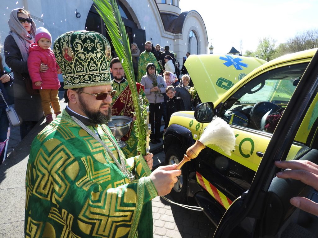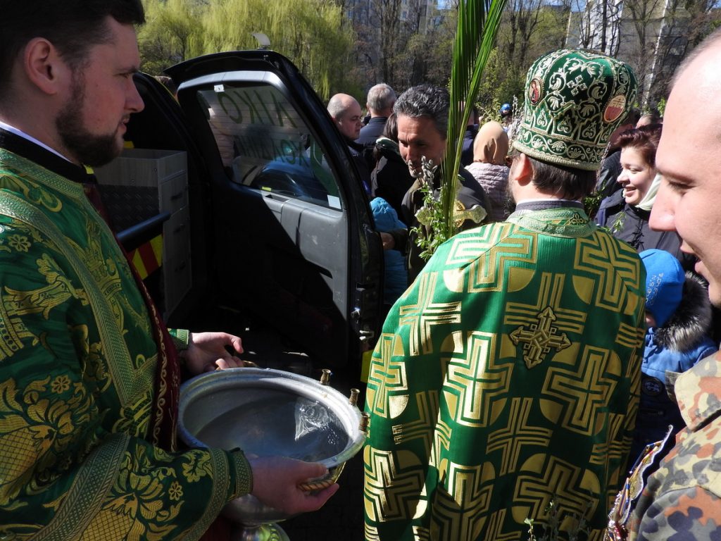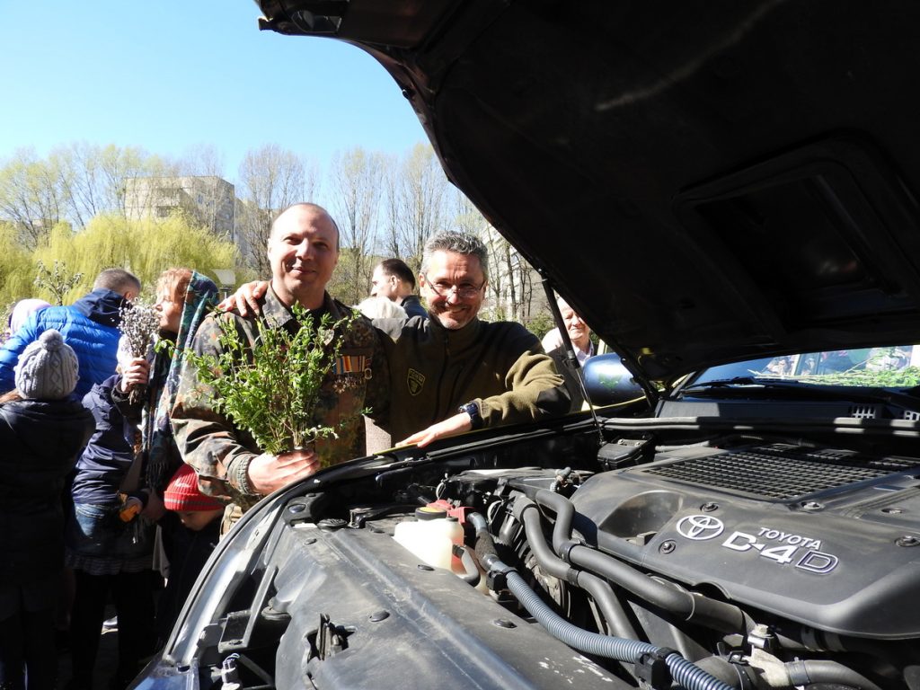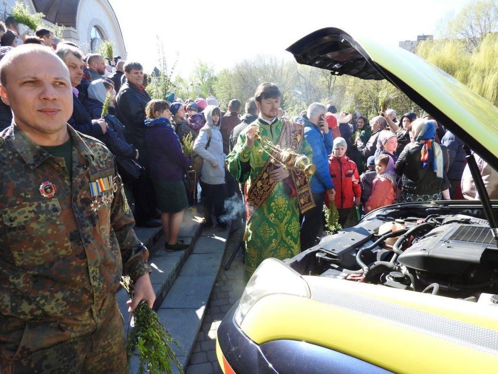 У Вербну неділю “Ліко-Холдінг” передав ПДМШ медико-санітарну машину та отримав для храму колекцію ікон на ящиках з-під боєприпасів