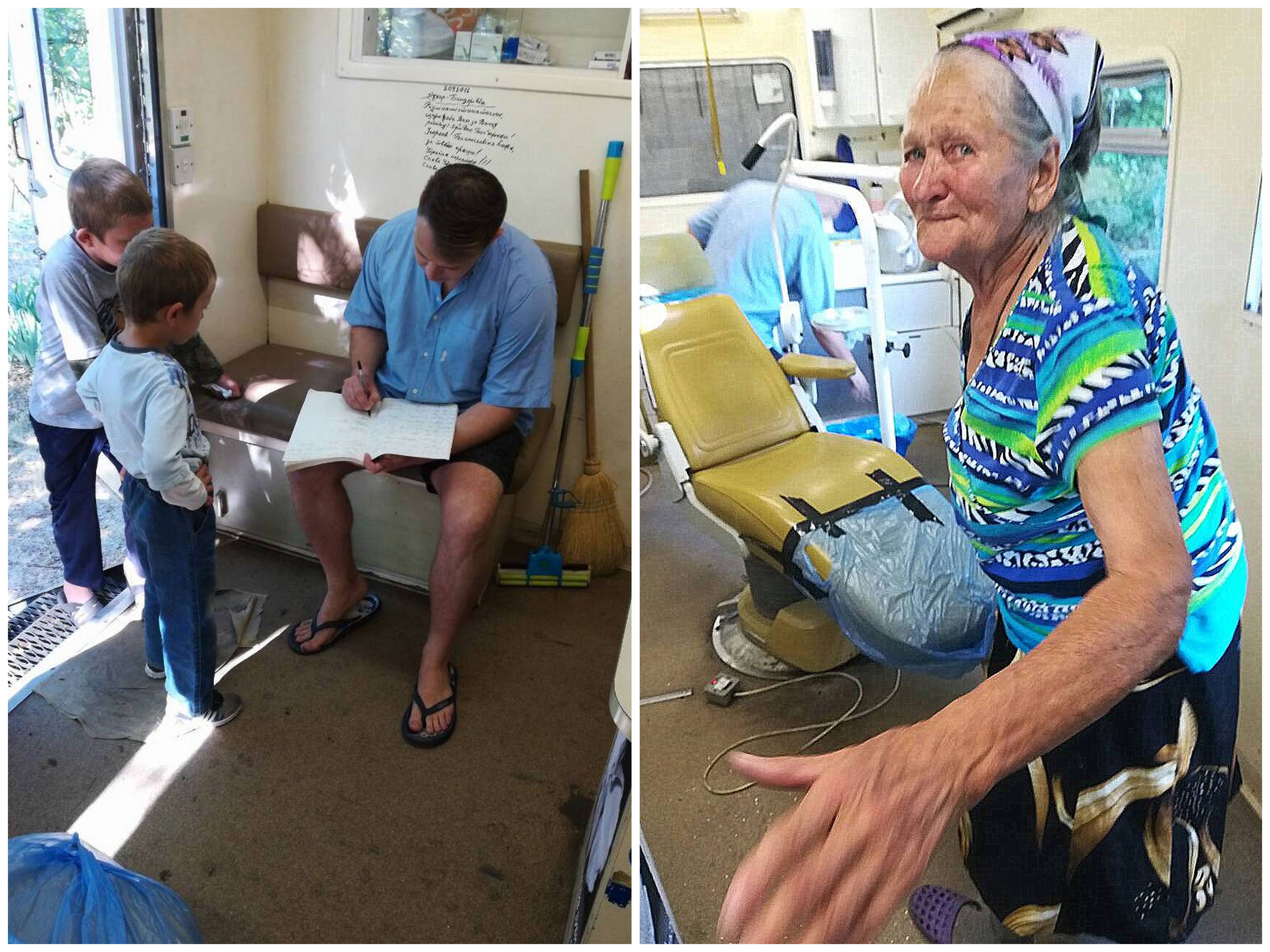 «Ми працювали з восьмої ранку й «до останнього клієнта», – каже Олексій. – У машині було тільки одне крісло, тому ділили роботу згідно зі спеціалізацією. Євген – хірург-стоматолог, він видаляє зуби. А я –лікую. Хоча Євген теж може робити пломби, і коли я вже зовсім стомлювався, то він «заходив на позицію».
